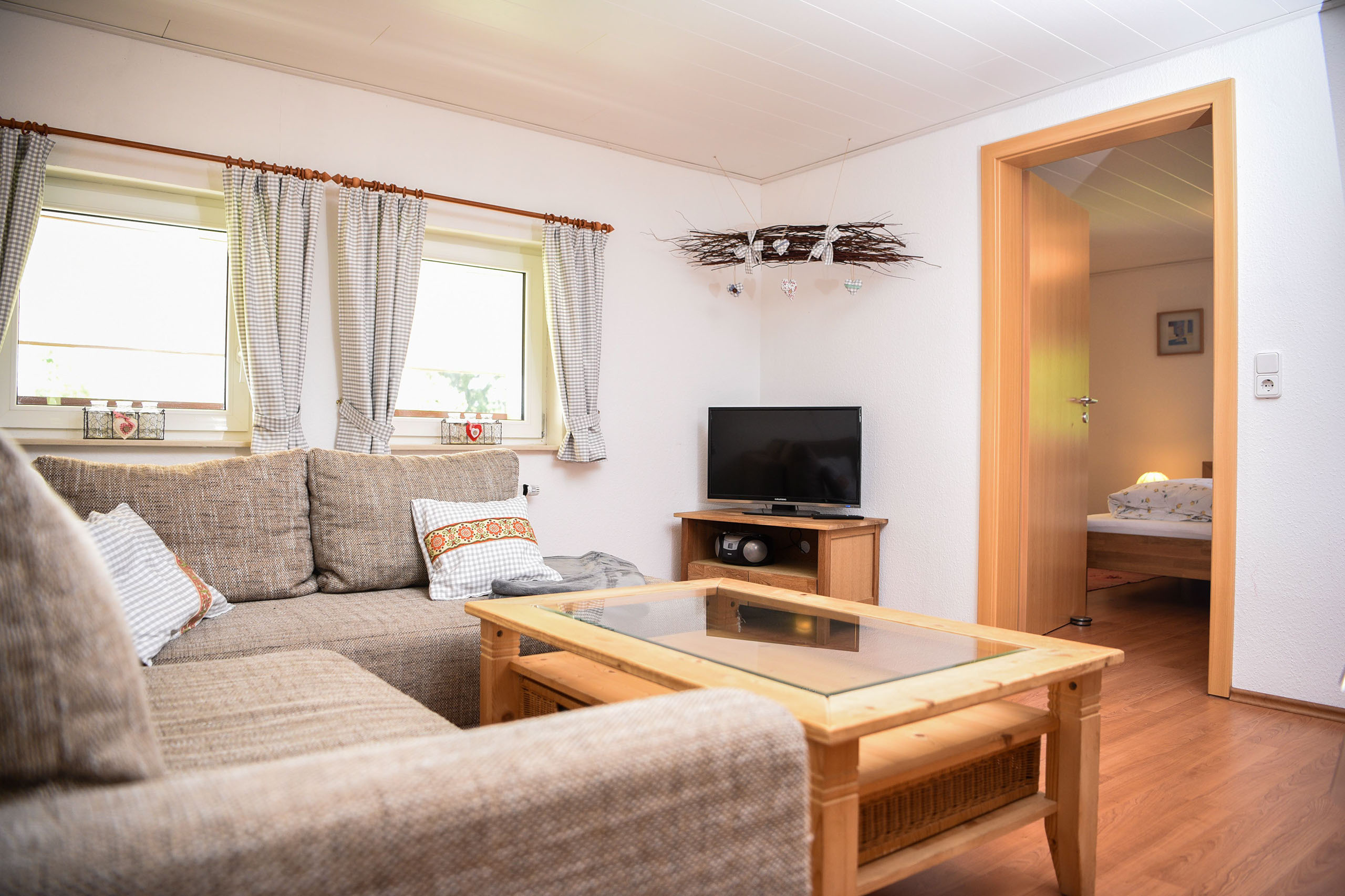 Die kleine Ferienwohnung mit 30qm besteht aus 2 Räumen. Einem Wohn/Schlafraum mit einem Sofa mit Schlaffunktion einer Küchenzeile und Mikrowelle. Einem seperatem Schlafzimmer mit Doppelbett und Zugang zum Balkon.